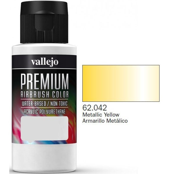 Vallejo Premium amarillo metálico 60ml, pintura acrílica para aerógrafo
