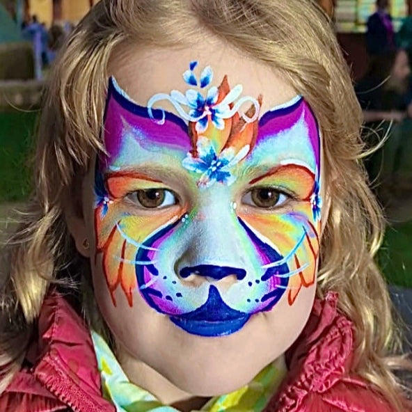 Crear pintacaras vistozos es facil con nuestros maquillajes al agua! Su alta pigmentación, sus colores vibrantes y la gran variedad de colores permiten crear diseños inolvidables para niños o adultos!